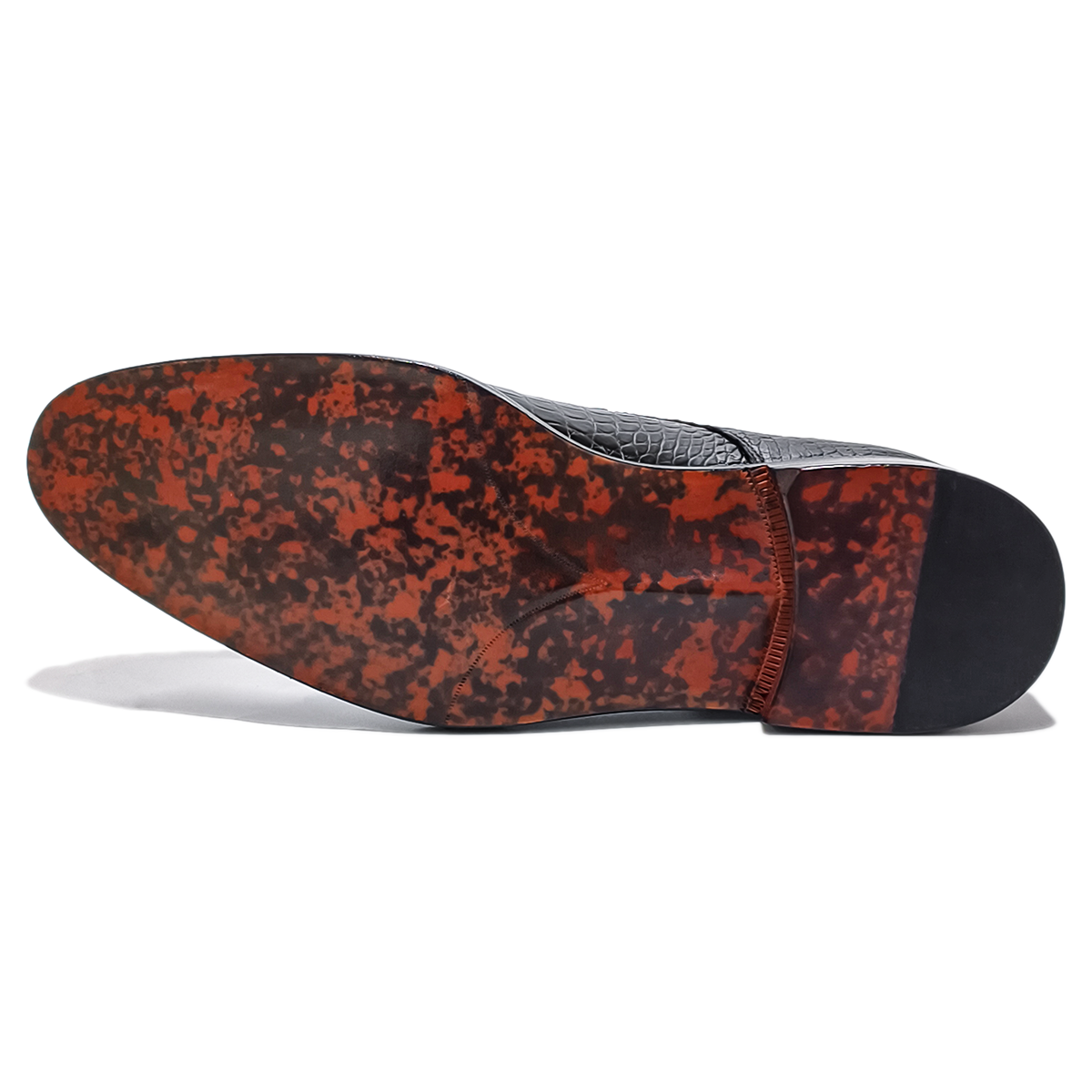 For those who value luxury texture, exquisite craftsmanship and comfortable formality in footwear, these glossy black alligator belly leather Derby shoes combine unique natural scale patterns, durable sewing, and the relaxed sophistication of Derby style. It’s not just a pair of dress shoes—it’s a refined, long-lasting companion that elevates your polished ensembles with upscale charm.