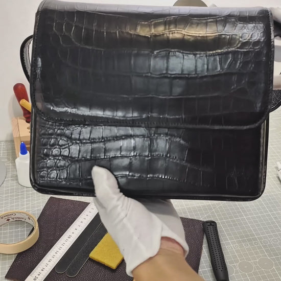 Handmade Genuine Alligator Belly Leather Crossbody Bag, Glossy Black Practical Daily Essential