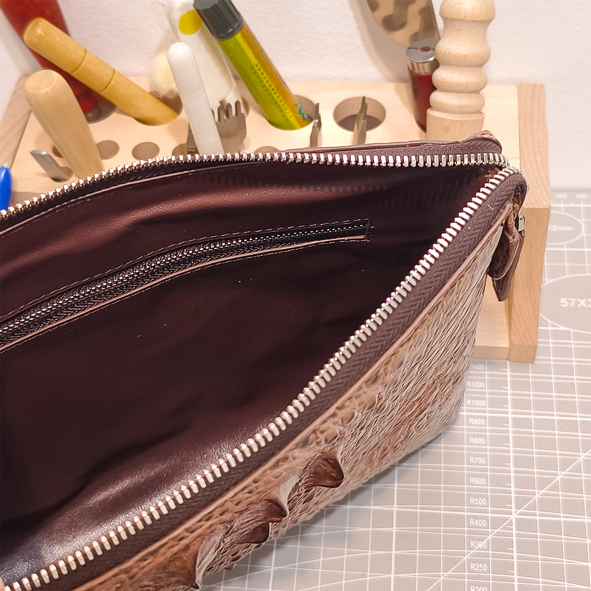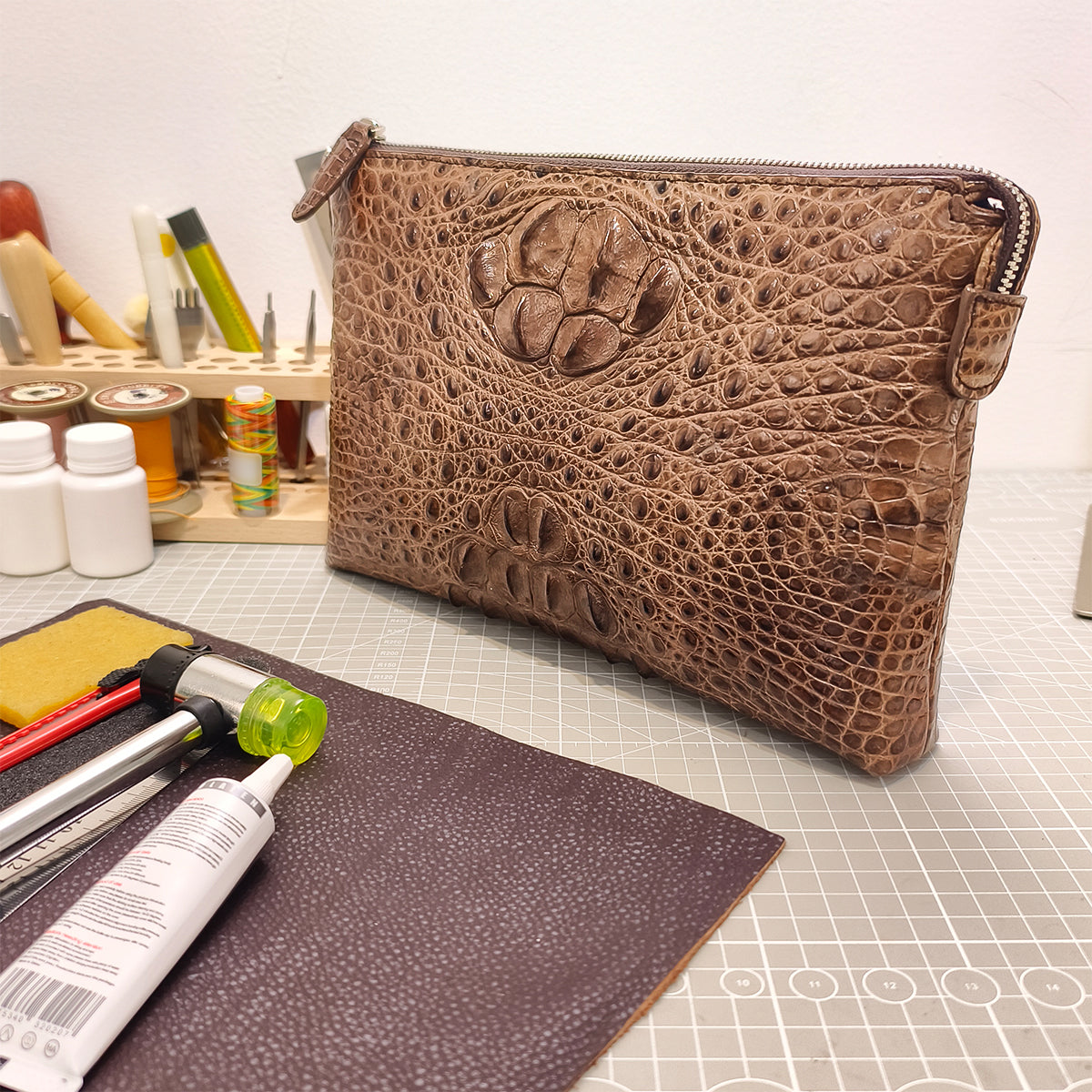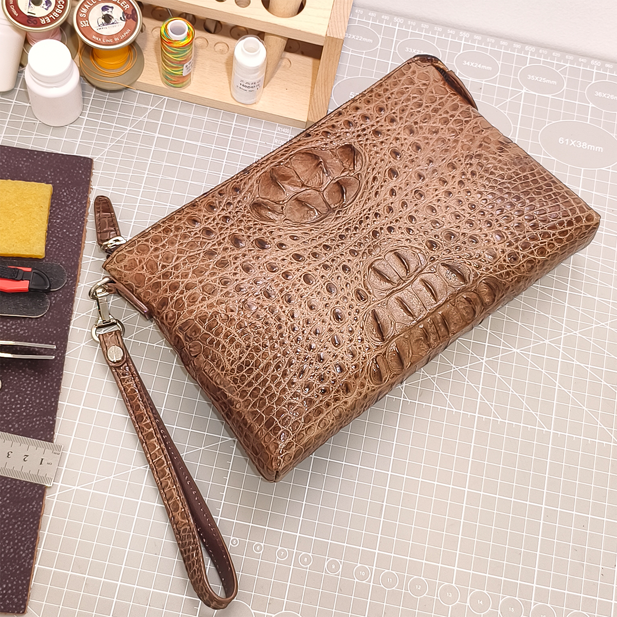 ✅ Detachable Wrist Strap: Equipped with a matching alligator leather wrist strap for easy, portable carrying.