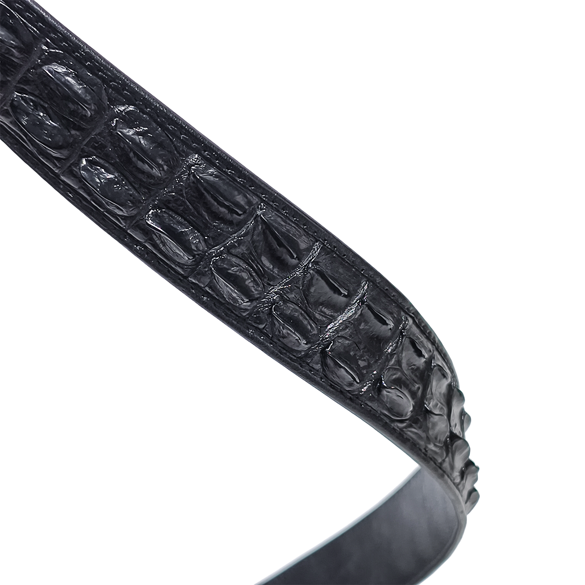 Handmade Genuine Alligator Horn Leather Belt, Black High-Gloss Texture Fit for Prong Buckle