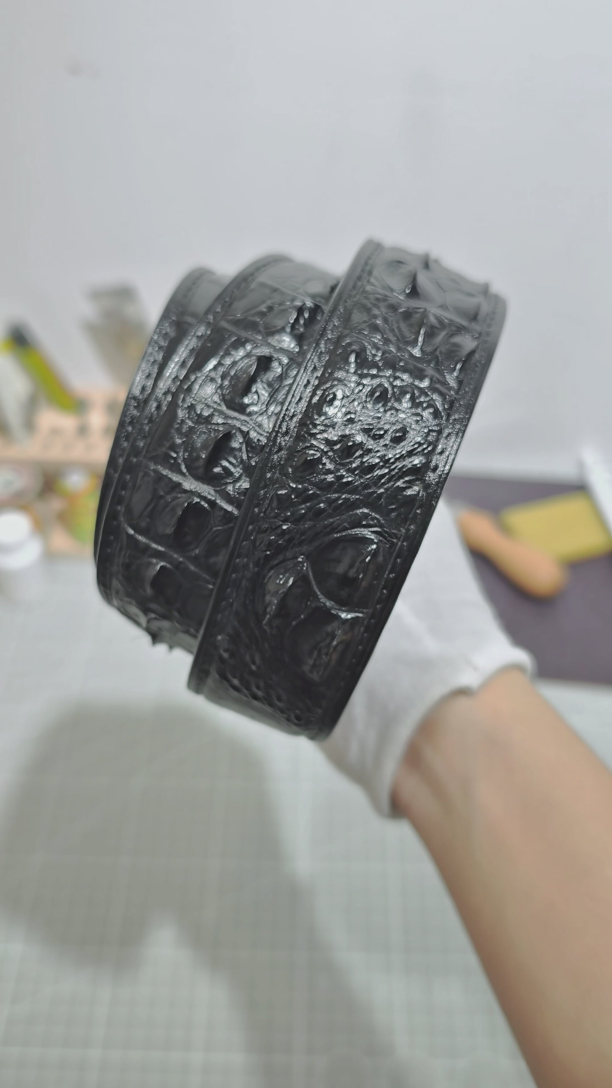 ✅ Premium Alligator Horn Leather: Crafted from top-grade genuine alligator horn leather (sourced from legally farmed alligators), showcasing luxurious natural horn scale texture and a sleek black high-gloss finish that exudes sophisticated, high-end exotic elegance.