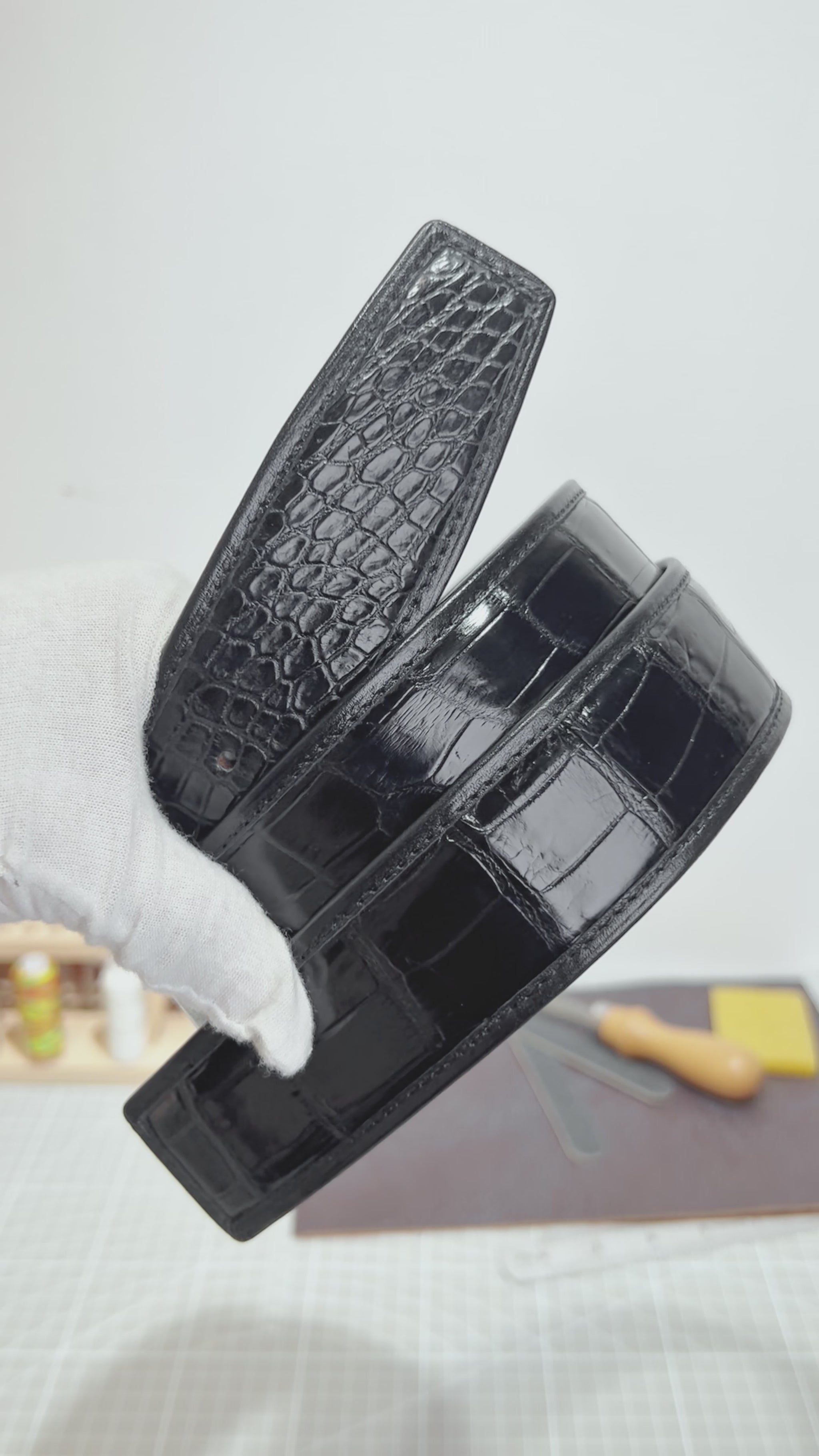 This handmade alligator belly leather belt merges the opulent, natural texture of premium alligator belly with meticulous craftsmanship. Designed for style-conscious individuals who prioritize quality and uniqueness, it’s not just a wardrobe accessory— it’s a luxurious, durable investment that elevates your ensemble with sophisticated exotic charm for years to come.
