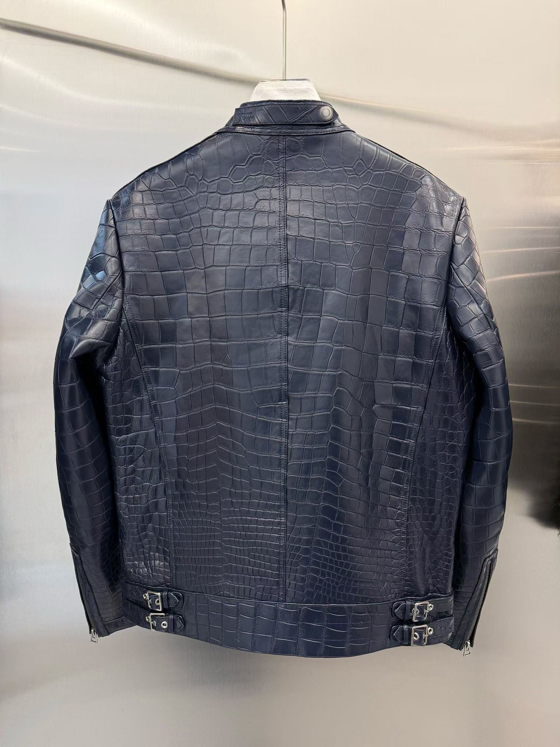 Handmade Genuine Alligator Leather Jacket, Navy Exotic Texture