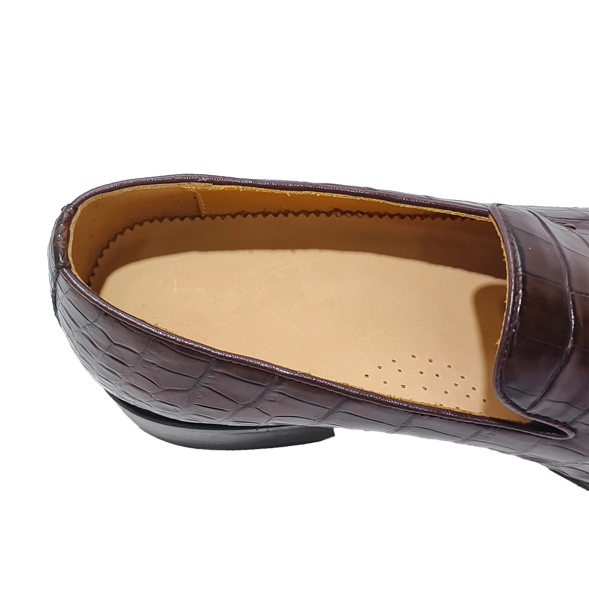 For those who value luxury texture, convenient wear and exquisite craftsmanship in footwear, these rich brown alligator belly leather loafers combine unique natural scale patterns, durable artisanal stitching, and the effortless sophistication of slip-on style. It’s not just a pair of casual shoes—it’s a refined, long-lasting companion that elevates your daily and semi-formal ensembles with upscale charm.