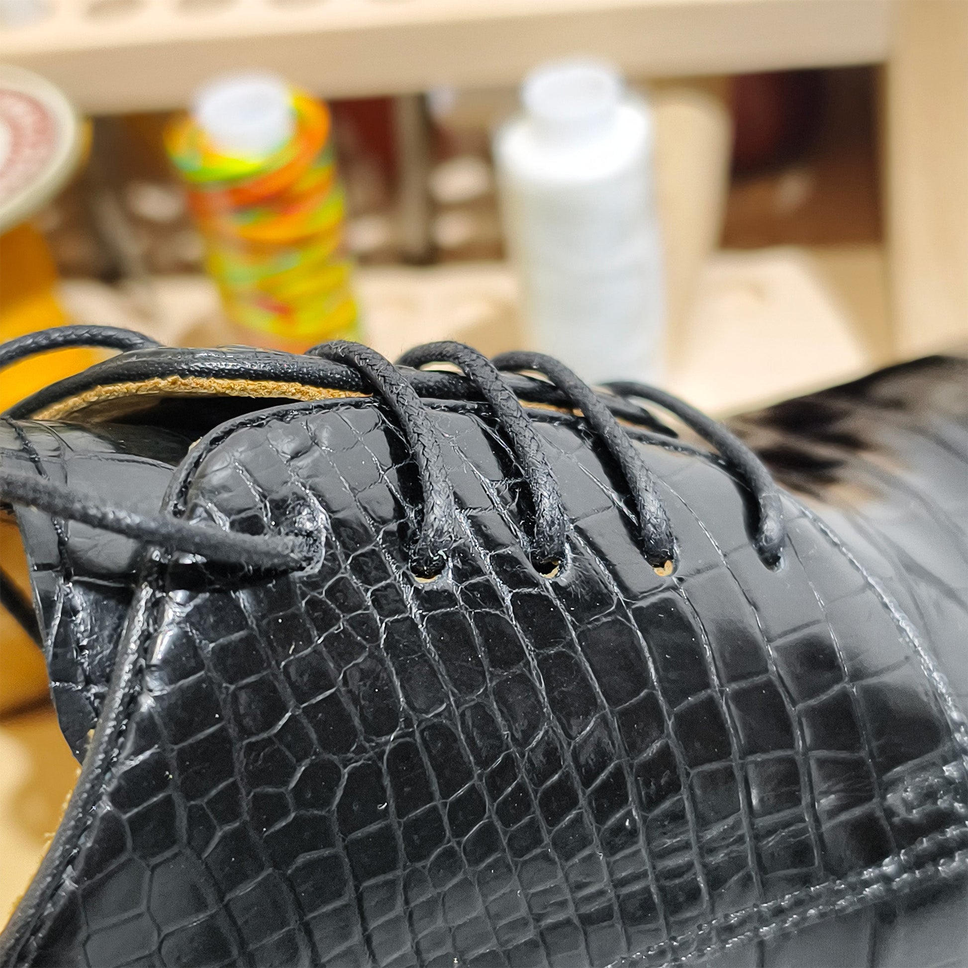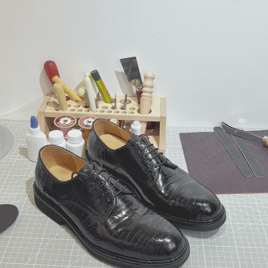 Handmade Genuine Alligator Leather Oxford Shoes, Glossy Black with Premium Artisanal Details