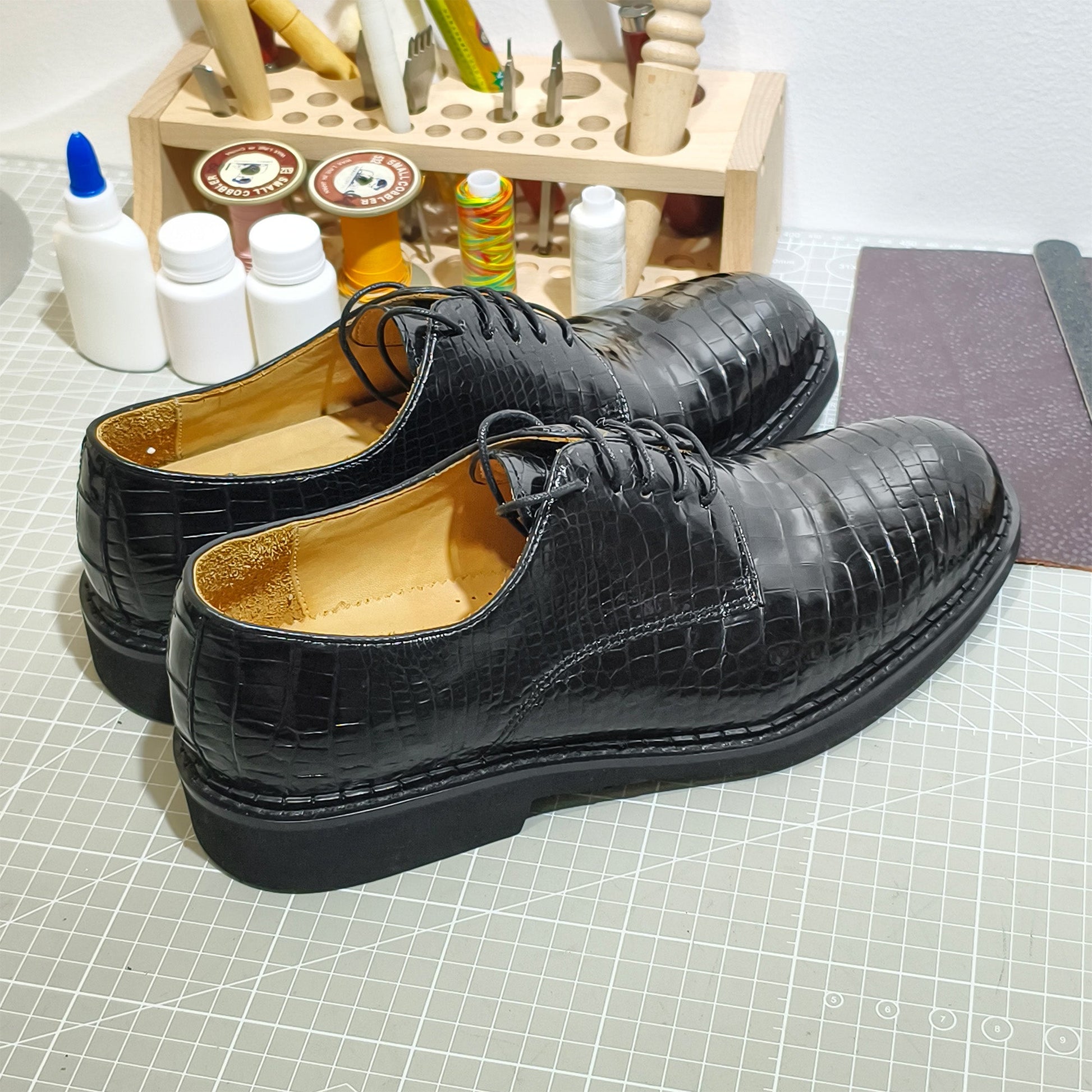 ✅ Classic Oxford Lace-Up Design: Timeless closed-lacing Oxford silhouette, paired with matching alligator leather laces, creating a polished, formal look that complements business suits, dress pants, or refined casual outfits.