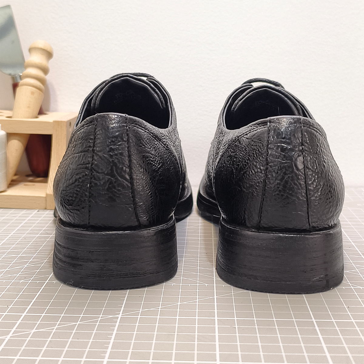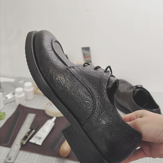 Handmade Genuine Bison Leather Oxford Shoes, Sleek Black Textured