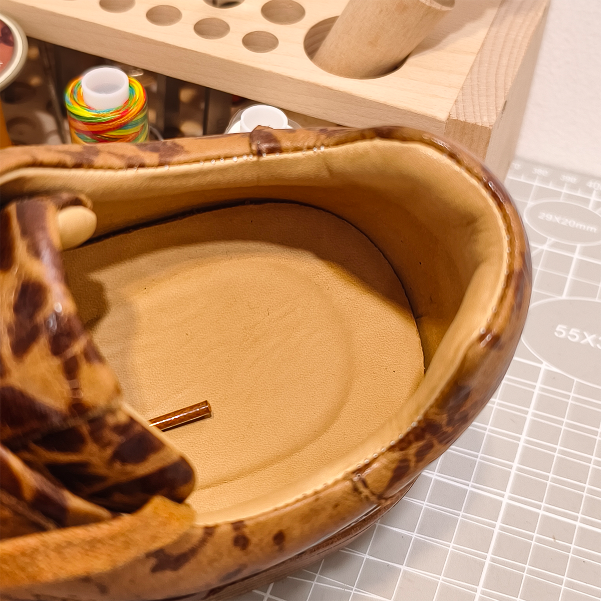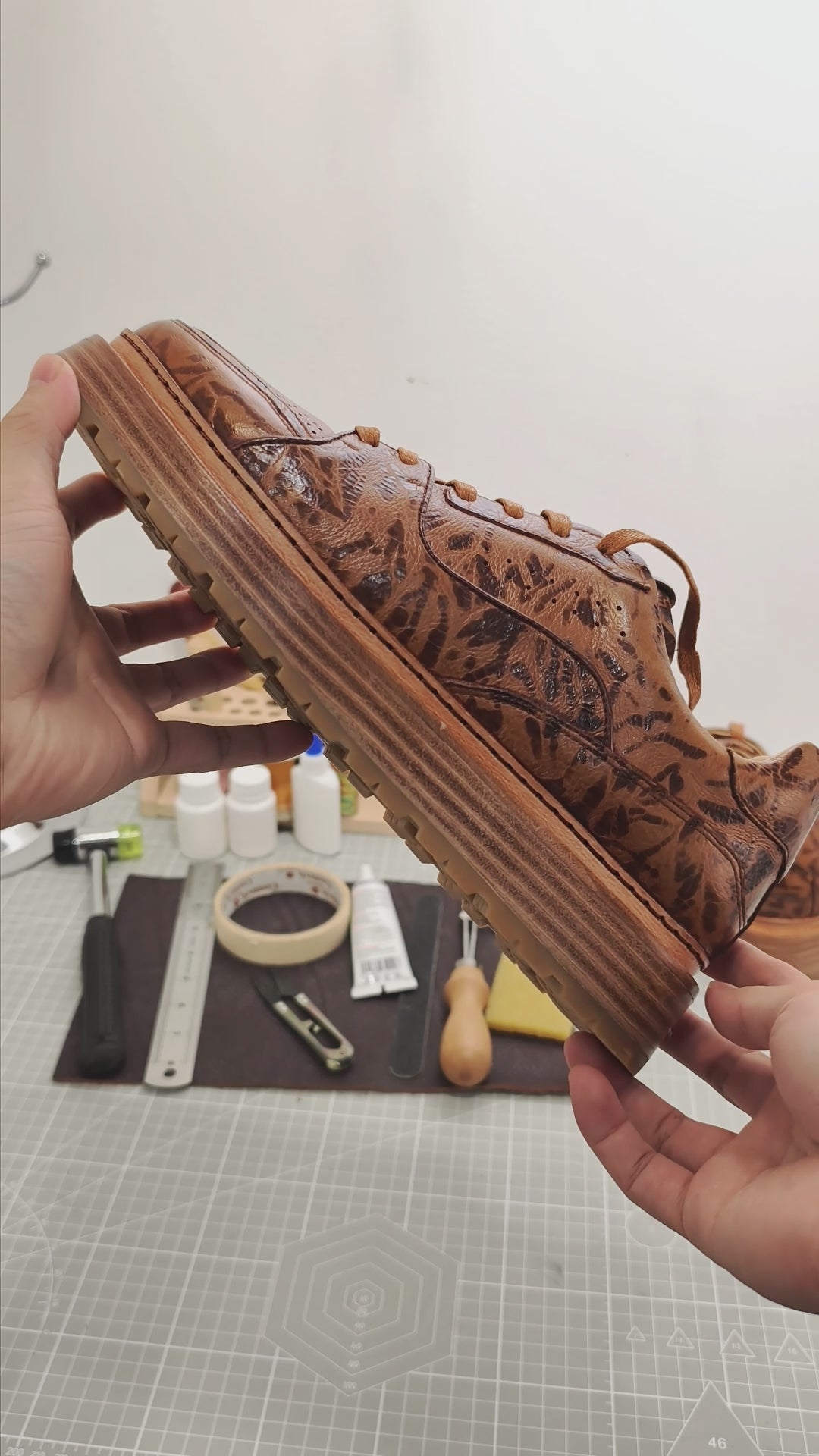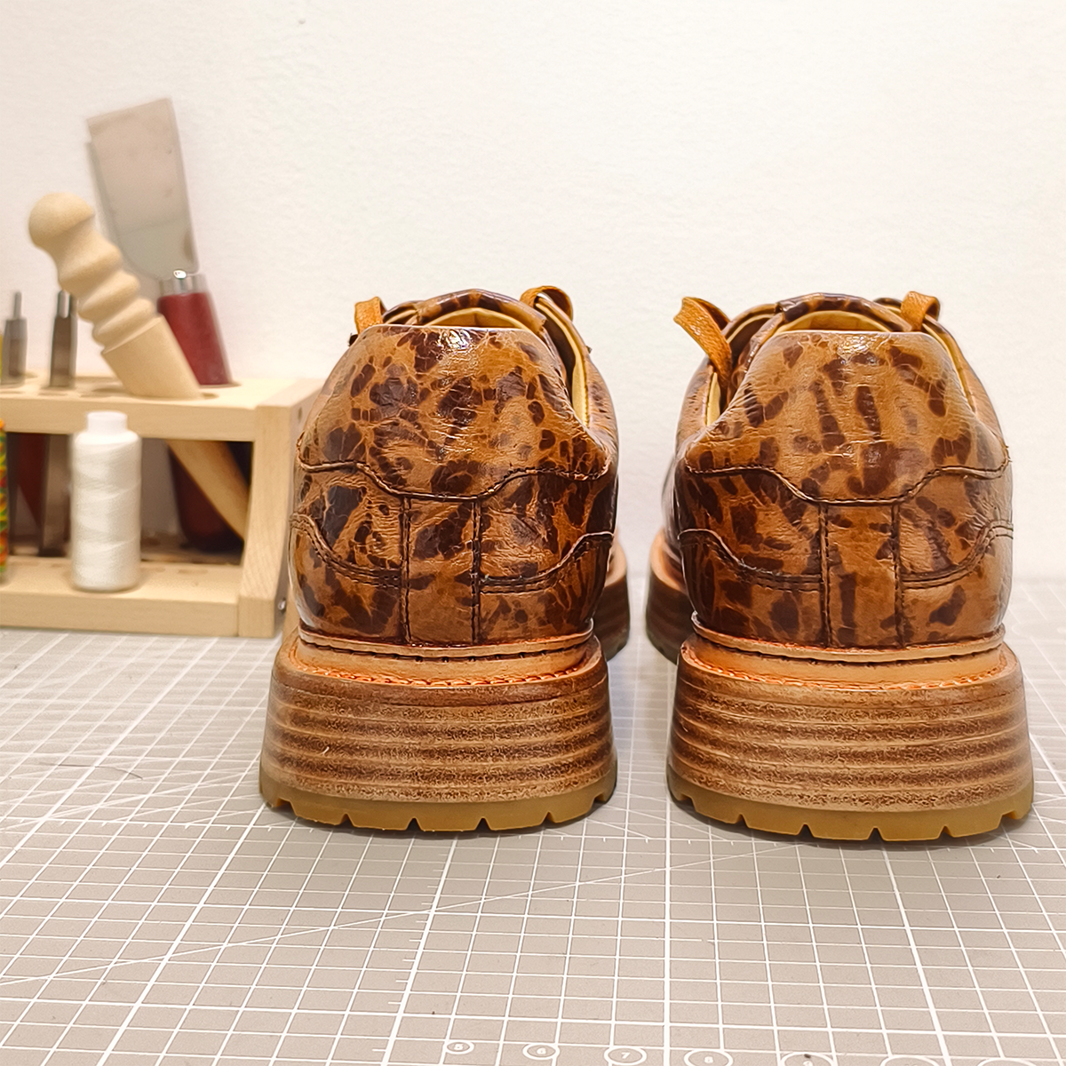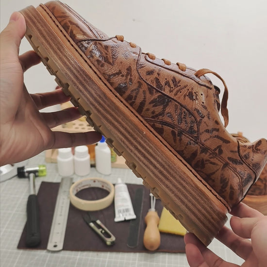 Handmade Genuine Bison Leather Sneakers, Brown Leopard Pattern with Chunky Sole