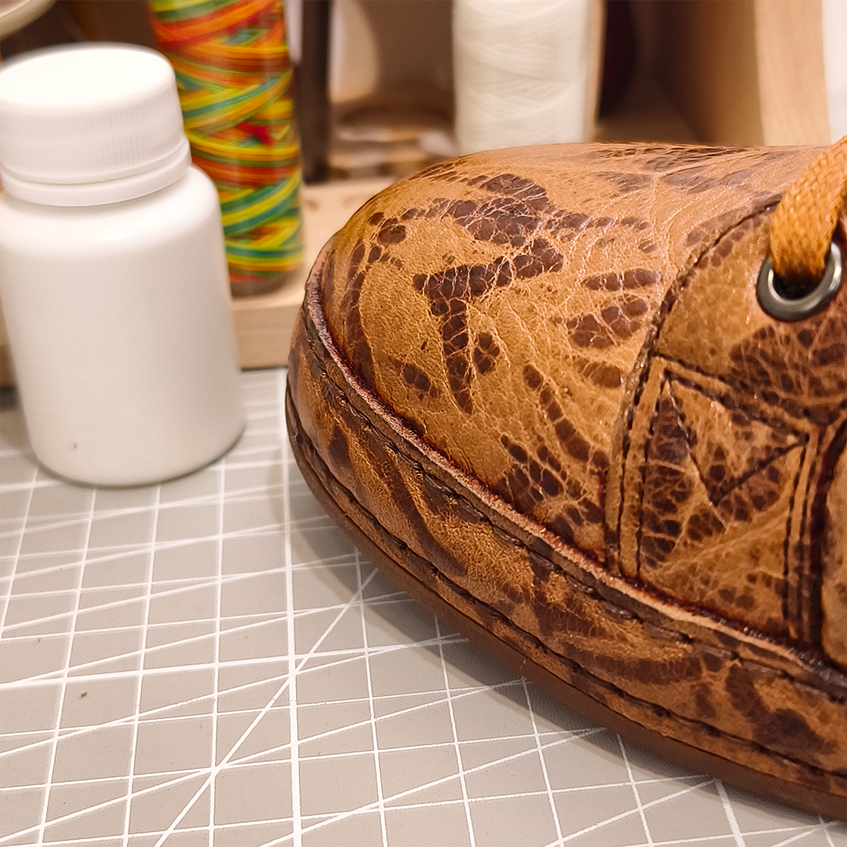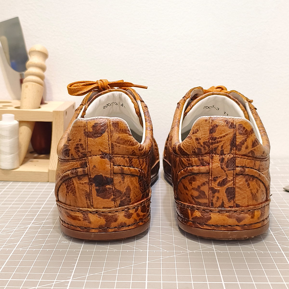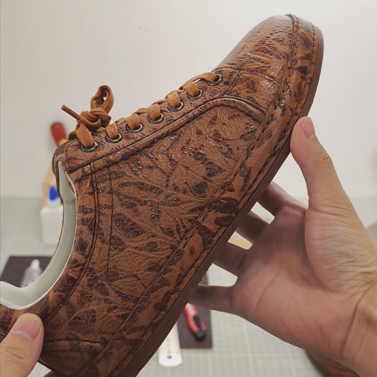Handmade Genuine Bison Leather Sneakers, Tan Textured with Coordinated Sole