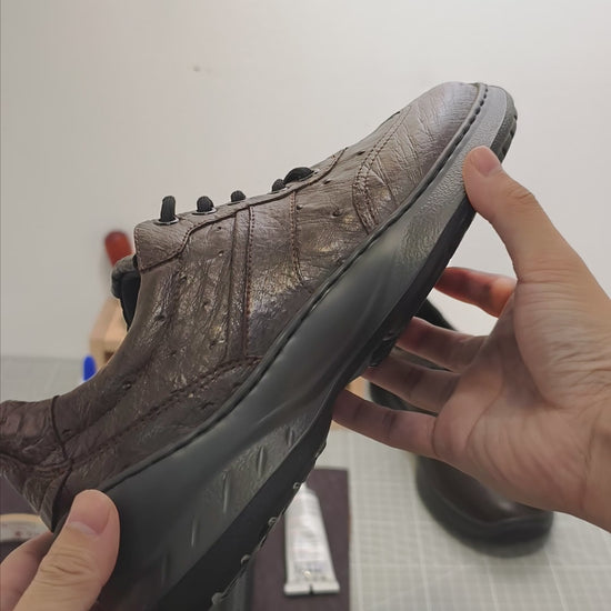 Handmade Genuine Ostrich Leather Sneakers, Rich Brown Luxe Design Shoes