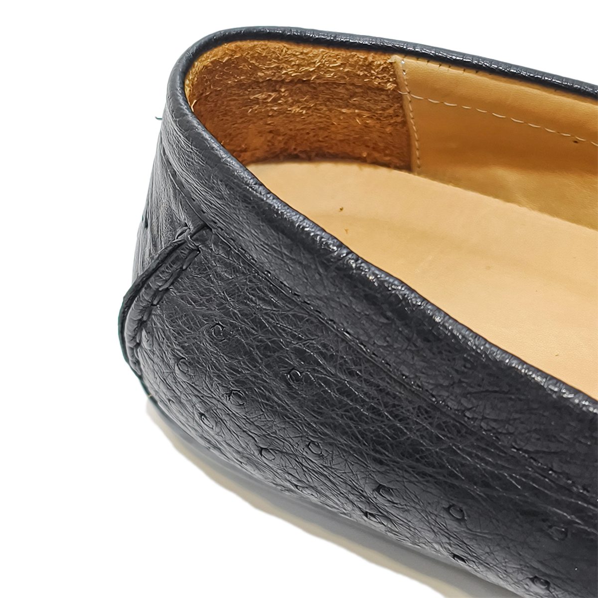 For those who value exclusive luxury textures, effortless convenience and understated elegance in footwear, these glossy black ostrich leather tassel loafers weave together unique natural quill patterns, the ease of slip-on design, and charming tassel details. It’s more than just a pair of loafers—this is a polished, comfortable companion that wraps your steps in exclusive sophistication, elevating every occasion from daily commutes to leisure gatherings with quiet luxury.