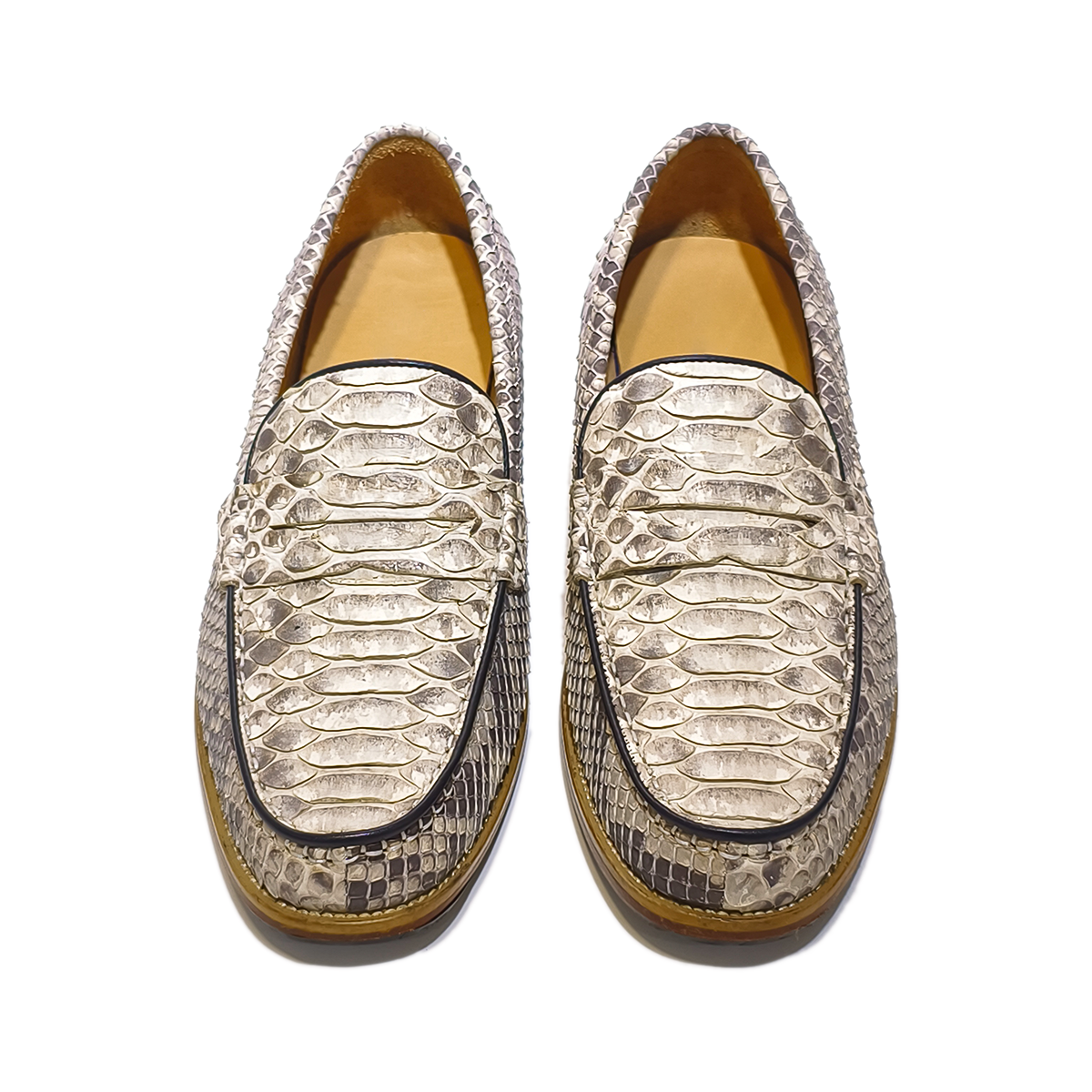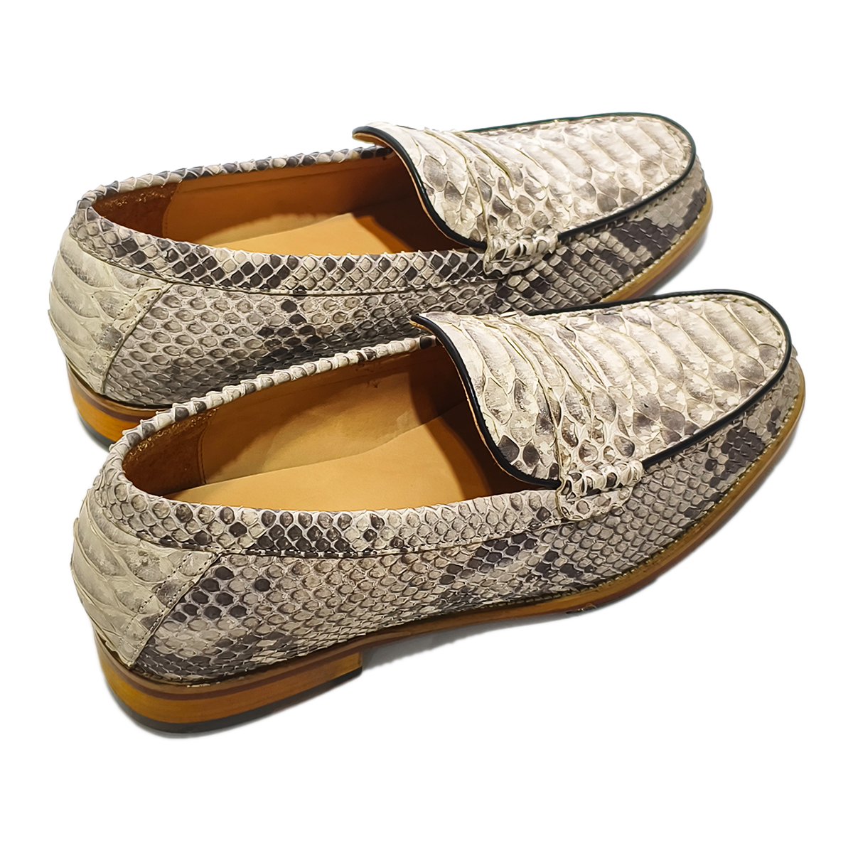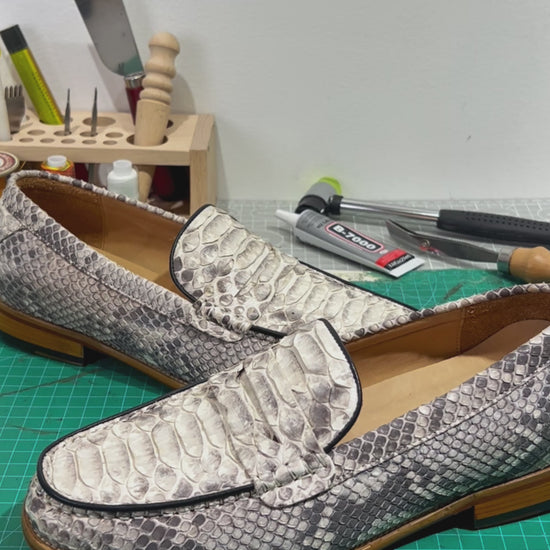 Handmade Genuine Python Leather Loafers, Natural Gray-White Scale Pattern with Real Leather Sole