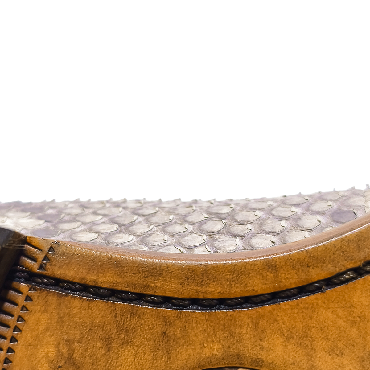 ✅ Meticulous Artisanal Craftsmanship: Features neat scale pattern alignment, refined stitching, and a polished wood-accented heel edge, highlighting careful handiwork for a sophisticated aesthetic.