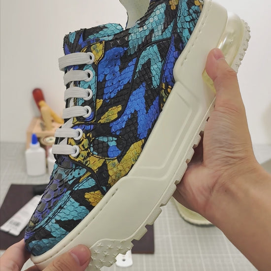Handmade Genuine Python Leather Sneakers, Vibrant Painted Design with Air Cushion Sole